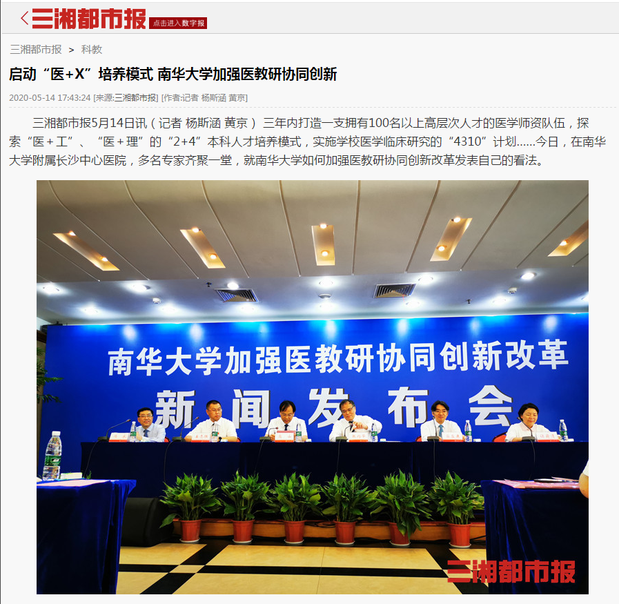 【三湘都市报】启动“医+X”培养模式 南...