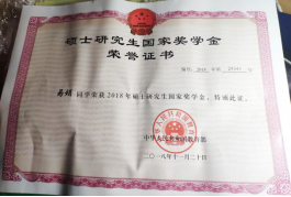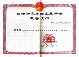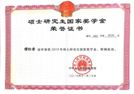 获国家教育部“硕士研究生国家奖学金”