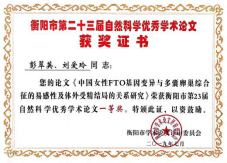 (9)FTO基因启动子区域SNP与mRNA m6A甲基化水平与PCOS肥胖的影响机制,2016.01-2018.01,3万元,湖南自然基金面上基金,彭翠英主持。