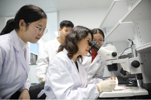 (王丹玲教授指导员工科研)