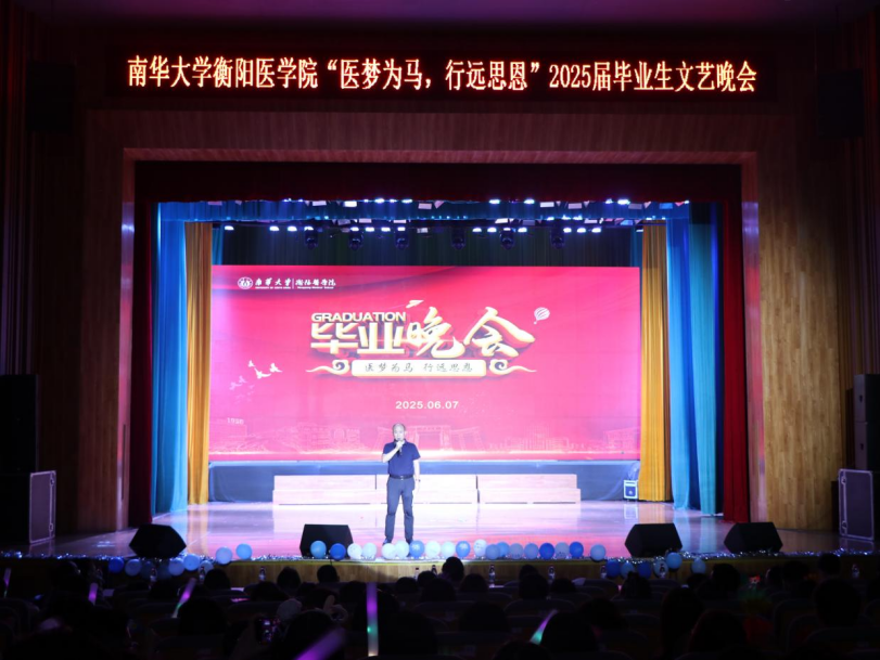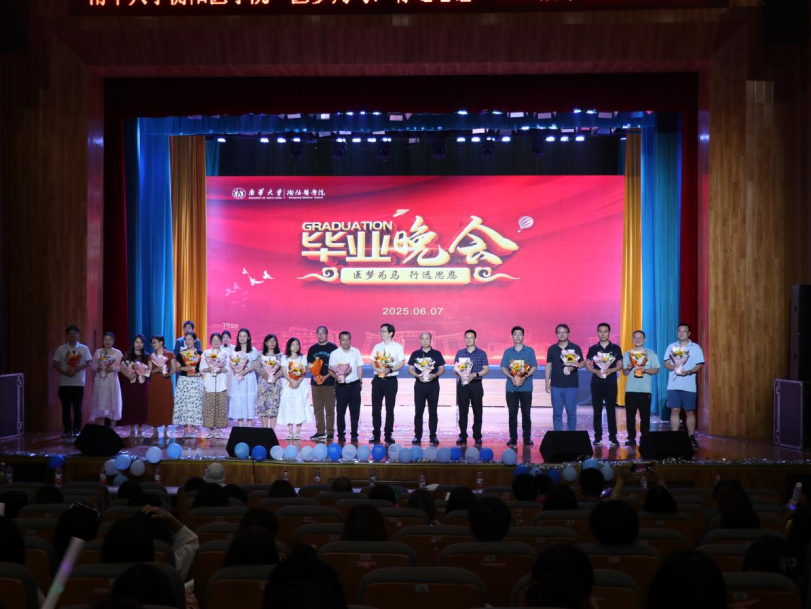 6月7日晚,太阳成集团tyc33455cc2025届毕业生文艺晚会在红湘校区南校大礼堂隆重举行,公司党委书记曾国、常务副经理屈顺林、副书记卢清华、副经理曾希、20级辅导员苏玲、周玉林,21级辅导员李翼、陈文,22级辅导员周玲,班主任代表陈代娣、刘小敏、陈明祥、丁楠,校工会洪丽、附一梁路昌、陈志文,附二周琳琳与毕业生一起共同参加。晚会分“医梦为马”与“行远思恩”上下两篇章,以线下和线上直播形式同步进行,累计超过6000人观看现场直播。