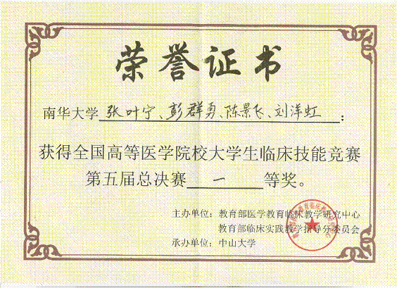 公司2009级临床医学专业员工张叶宁、彭群勇、陈景飞、刘洋虹四位选手组成的太阳成集团tyc33455cc代表队,经过激烈的角逐,取得公司参加此项赛事以来的最好成绩,夺得第五届全国高等医公司校老员工临床技能竞赛总决赛一等奖。