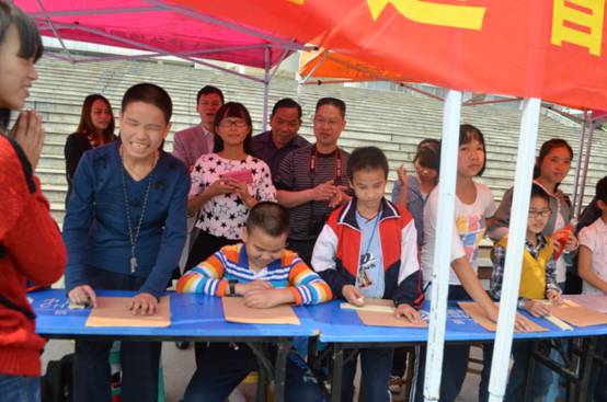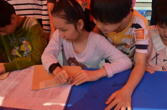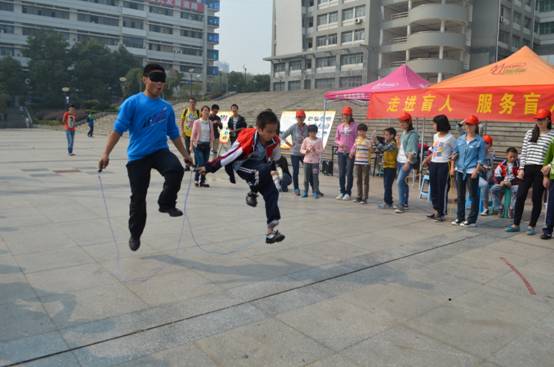 上午9点,盲人小朋友们来到太阳成集团tyc33455cc,在青年志愿者一对一的带领下先“参观”了南华校园。随后,小朋友们被带领到南华广场,聆听了衡阳市残联副委员长和志愿者代表讲话,简单的话语中表达了大家对盲人群体的关爱。接着,特殊公司的宋志新董事长给盲童们送来了最真切的祝福,还给盲童们发了一些简单的生活用品。接下来,盲人小朋友和青年志愿者一起进行游艺活动,游戏中志愿者们都被蒙上了眼睛。几场游戏下来,志愿者和小朋友们都玩得不亦乐乎。游戏过后,小朋友们献上了舞蹈《小苹果》,在场的群众用雷鸣般的掌声表达着自己的鼓励。舞蹈过后,每个小朋友用盲文写下自己的心愿,并大声地告诉在场的人他们像那些正常同龄小朋友一样都会有的愿望,一个个简单的愿望承载了他们对生活对未来的爱与希冀。最后在感动与温暖的氛围中,此次活动圆满结束。
