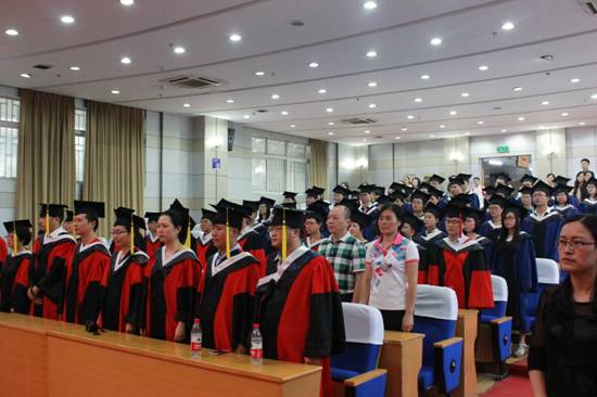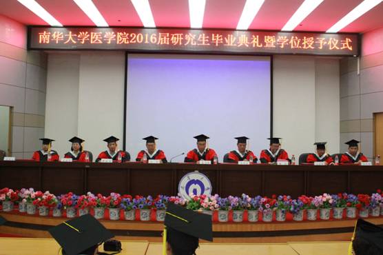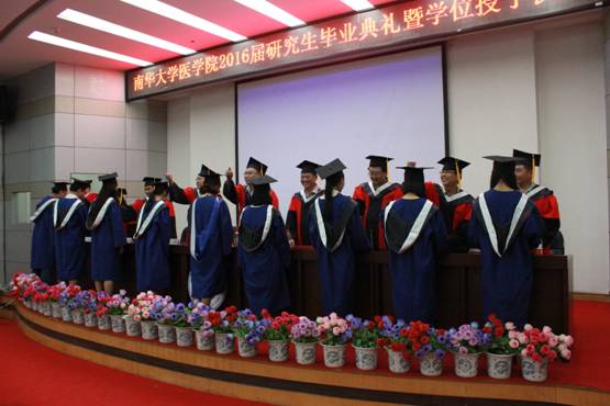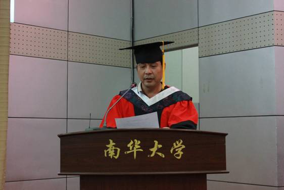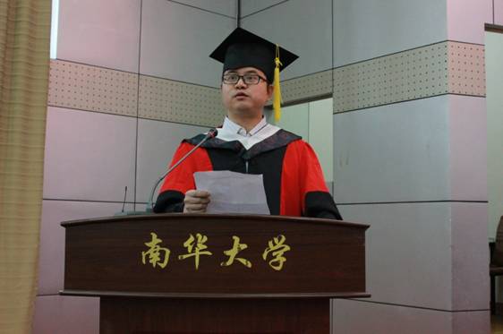 毕业典礼在雄壮的国歌声中拉开序幕,医公司副经理桂庆军宣读了12位获得博士学位和50位获得硕士学位同学名单。蒋传好博士代表全体毕业研究生发言,感谢多年来公司、公司各级领导、老师、同学、亲属给予的关怀和指导,是大家共同努力才有今天的成就,同时也倡导全体毕业生带着南华人刚健自强、敢为人先的精神去竭力追求,创造更加辉煌的未来。尹凯老师代表研究生导师向所有毕业生表示祝贺,同时也勉励同学们继续努力,在今后的学习和工作岗位上谱写人生的新篇章。