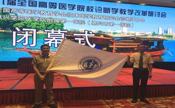 会上,公司桂庆军教授与尹凯副教授就下届全国高等医公司校诊断学教学改革研讨会的举办权进行了申报陈述,展示了公司为举办下届年会所作出的充分准备。经大会表决,公司从几所拟申报高校中脱颖而出,获得第20届全国高等医公司校诊断学教学改革研讨会的举办权。闭幕式上,桂庆军教授与本届大会执行主席进行了会旗交接,并致辞欢迎全国各大院校老师参加明年在雁城衡阳举办的全国诊断学年度盛会。