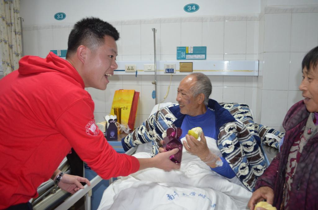 联欢会结束之后,志愿者们特意将苹果送至住院部病房。他们将温暖的话语溢满病房,把爱留在了肿瘤病人的心中。