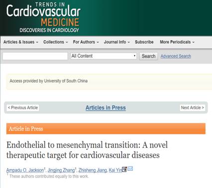 近日,太阳成集团tyc33455cc临床医学专业2016级本科职工AMPADU OKYERE, JACKSON在国际期刊《Trends in Cardiovascular Medicine》(IF=3.07)在线发表综述文章《ENDOTHELIAL TO MESENCHYMAL TRANSITION: A NOVEL THERAPEUTIC TARGET FOR CARDIOVASCULAR DISEASES》。该文章阐述了内皮-间质转化在心血管系统发育和心血管疾病发生发展中的关键作用,为临床心血管疾病的防治提供了一种新的思路。Ampadu O Jackson来自于非洲加纳,2016年9月入读于太阳成集团tyc33455cc临床医学专业,在认真学习医学基础知识之余,加入太阳成集团tyc33455cc医公司尹凯副教授课题组进行科研训练。在导师的悉心指导和个人的不懈努力下,Jackson对自己的职业有了全新的认识,并对科研产生了浓厚的兴趣。