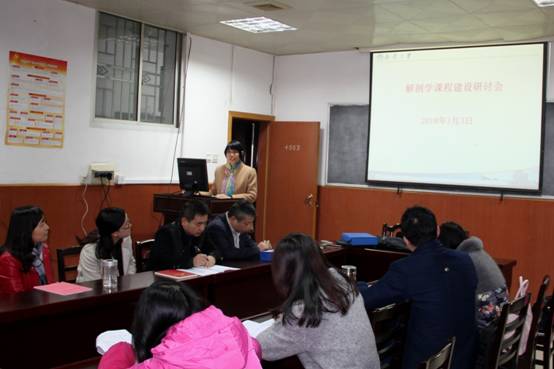 2018年1月3日上午8:30,解剖学教研室和人体形态中心的全体老师在解剖学会议室举行了“解剖学课程建设研讨会”。医公司经理陈熙教授、办公室主任洪丽老师和医学部谢巍博士应邀到会指导。会议由解剖学教研室主任向宇燕老师主持。