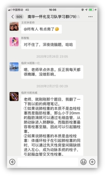 疫情阻挡了师生间的空间距离,却不能阻挡老师们的教学热情。《妇产科学》中女性生殖生理系统的内容相对枯燥,为了上好这堂课,谭善梅老师提前准备了当前热门的社会问题:“女性卖卵子的危害”“人妖为什么短命”。用现实问题引发员工的学习兴趣,同学们积极翻阅各种资料,上课前一天晚上,在微信群里与谭善梅老师热烈互动讨论到零点还意犹未尽,同学们的学习热情与好学精神深深地感动着谭老师,忘却了自己一整天手术的疲劳。备课期间,谭老师利用手术间歇期和休息时间多次进行网络教学演练,考虑到员工们没有教材,谭老师做了两份PPT,一份上课专用,另一份为课本知识详解。为了保证上课时间的整体性,谭老师特意将课堂时间调整为相对充裕的晚上,原本90分钟的课时,因为师生间的热烈讨论而被延续到凌晨。
