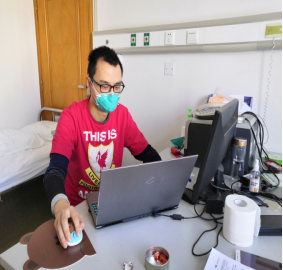 2月18日,谭洪毅根据教学要求,克服多种困难,在“学习通”平台上给2017级临床见习生进行线上授课,内容为支气管哮喘,课后利用休息时间在线上给员工答疑解惑。他把床搬到电脑旁,不误医疗和教学,做到抗疫授课时空巧妙结合;他把扎实的学识通过仁爱之心传递给员工,以高尚的人格魅力赢得员工敬仰,以模范的行为举止为员工树立榜样,将真善美的种子不断传播到员工的心中,尽到“教书育人,立德树人”的责任,做到救人育人内容两不误。