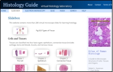 教研室通过多方搜索、反复查阅,发掘了优质的线上虚拟切片平台资源。采用的虚拟切片平台是:http://www.histologyguide.org/slidebox/slideb ox.html(图4左)。每次课将需要观察的切片编号及链接发送给员工,以便员工自主观察学习;或者通过腾讯课堂分享屏幕,带员工一起观察,同时辅以语音讲解,在线解答员工在观察切片过程中的各种问题。