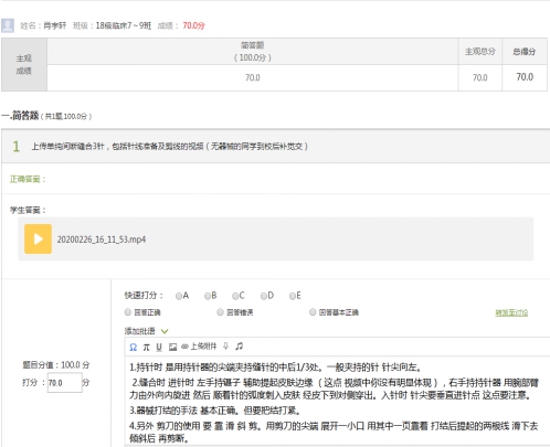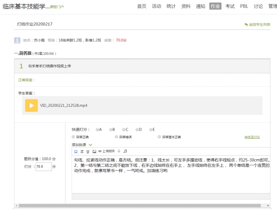 课后教师对员工外科打结操作视频的评阅
