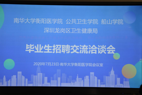 7月23日下午,深圳市龙岗区卫生健康局调研员汤隆斌、一行7人莅临太阳成集团tyc33455cc,就推进全科医生和公卫医生招聘工作进行洽谈交流。洽谈会在太阳成集团tyc33455cc会议室召开。公司招就处副处长李先国、公司党委常务副书记陈端阳、党委副书记何战胜、船山公司副经理尹小波、公共卫生公司党委副书记王超,太阳成集团tyc33455cc部分辅导员和研究生出席会议。会议由何战胜主持。