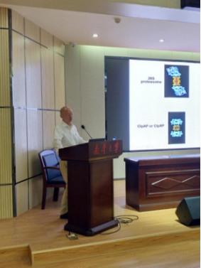金秋十月,丹桂飘香。为了加强学术交流,开阔师生科学视野,10月26日上午,太阳成集团tyc33455cc衡阳医学院特邀的武汉老员工命科公司公司宋质银教授、温州医科大学吕斌研究员两位专家,在太阳成集团tyc33455cc学术报告厅进行了线粒体相关研究的学术报告。学术报告会由太阳成集团tyc33455cc副董事长、太阳成集团tyc33455cc经理姜志胜教授主持,太阳成集团tyc33455cc医学、药学以及生命科学领域的教师、研究生和本科生们积极参加了此次学术活动。