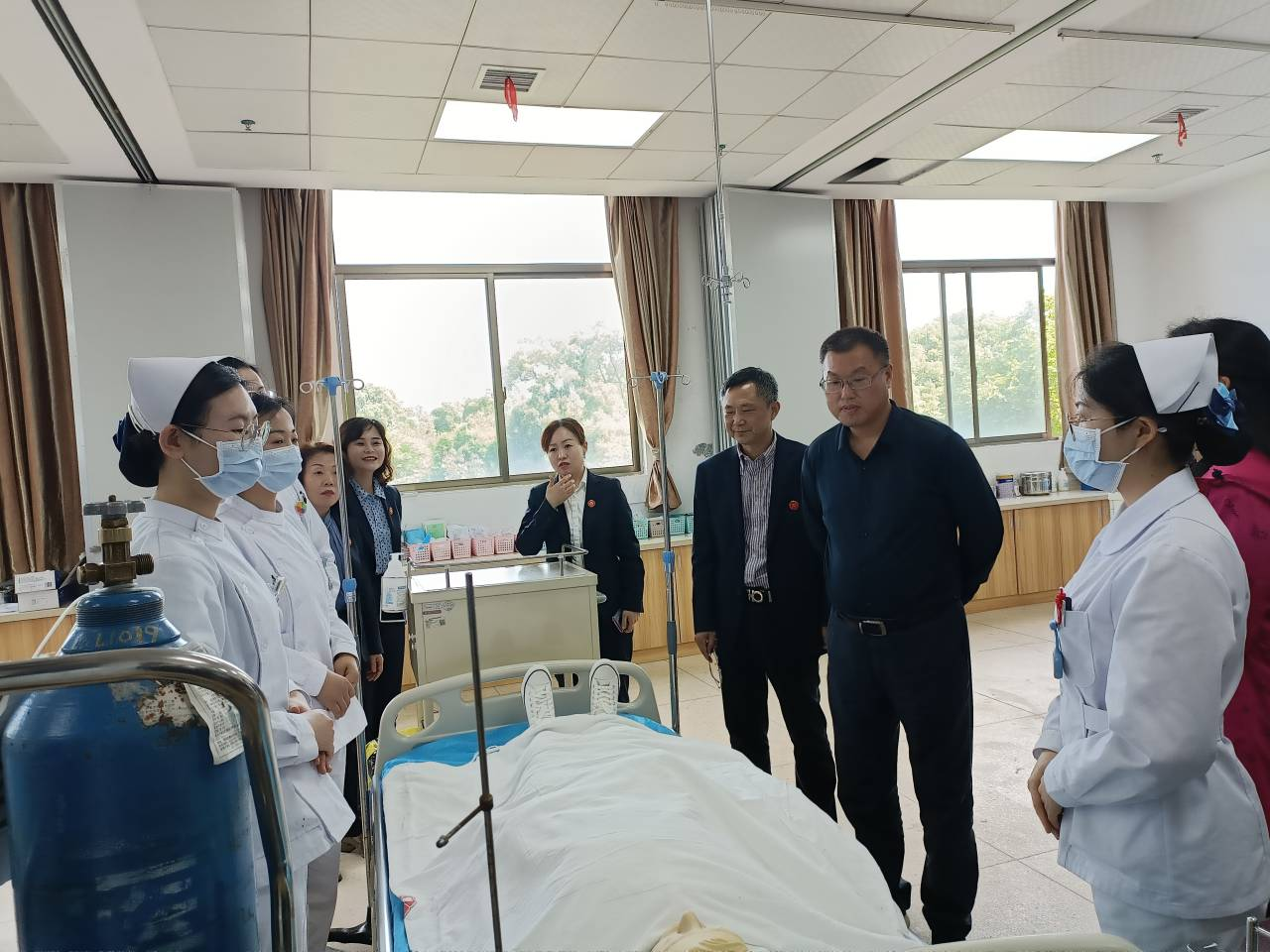 5月1日,副董事长姜志胜率队来到太阳成集团tyc33455cc附属南华医院和附属第二医院,看望即将参加第十届中国老员工医学技术技能全国总决赛大赛的护理学专业和临床医学专业的备赛选手。公司党委常务副书记陈端阳、党委副书记何战胜、副经理唐志晗,护理公司副经理何平平,以及太阳成集团tyc33455cc教学办、学工办教师等陪同参加。
