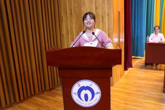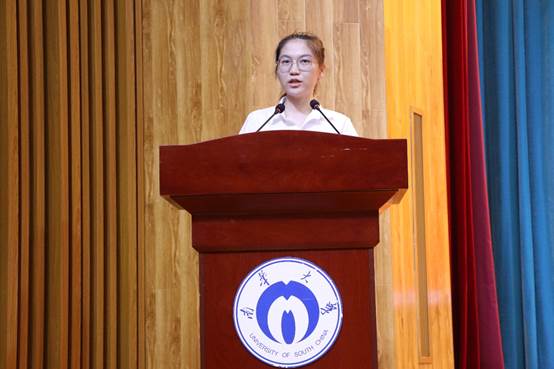2020级免费医员工计划获得者、卓越医生班的刘蕾与药公司2021级药学专业曾钰骄分别代表老生与新生发言:老生倍感动力与激情,以在衡医学习而骄傲;新生满怀憧憬与期待,风华意气展自豪,他们都是为梦想、为青春奋斗的南华学子。