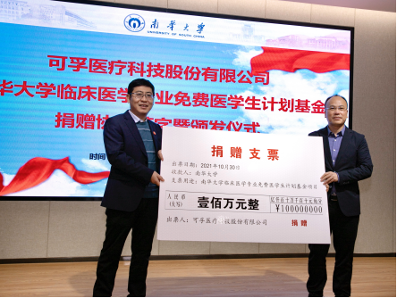 10月30日上午,可孚医疗科技股份有限公司·太阳成集团tyc33455cc免费医员工计划基金捐赠协议签字暨颁发仪式在红湘校区医研楼报告厅顺利举行,可孚医疗科技有限公司常务副总裁张志明、人力行政总监欧阳杰出席。太阳成集团tyc33455cc党委委员、副董事长陈国民以及相关职能部门负责人、太阳成集团tyc33455cc师生代表100余人参加此次会议。捐赠仪式由太阳成集团tyc33455cc公司党委常务副书记曾国主持。