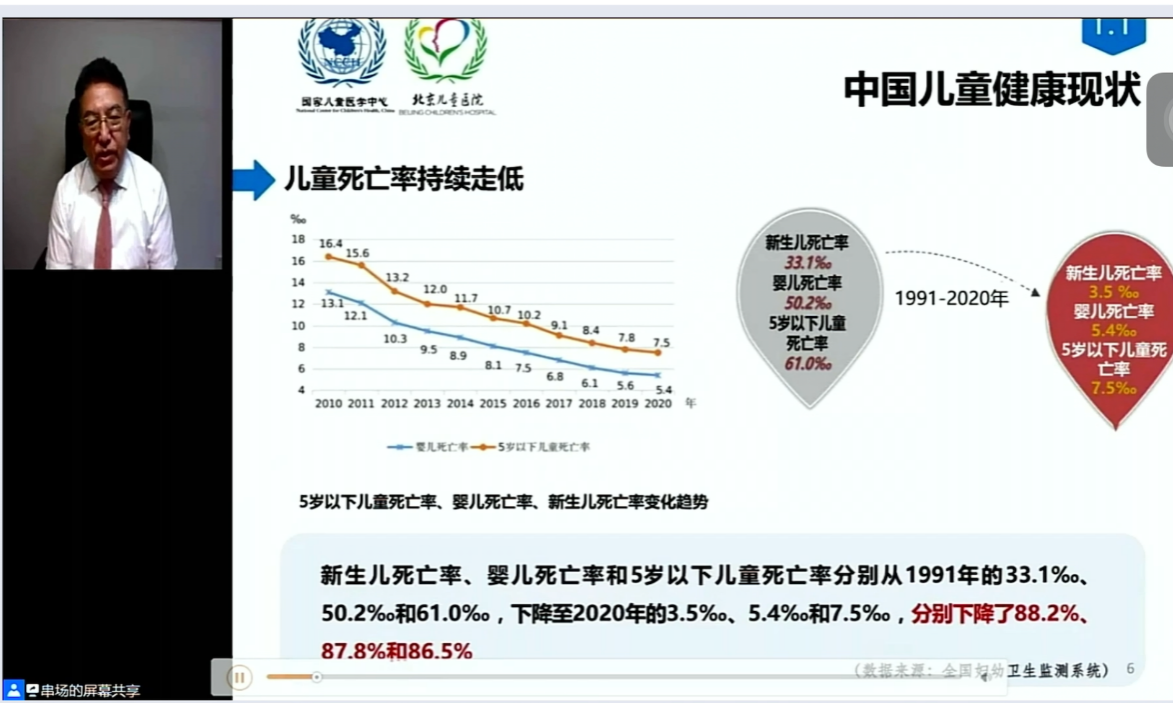 湖南省卫生健康委副主任祝益民教授作《儿童健康的挑战与思考》主题讲座。他提出儿童意外伤害是儿童死亡的主要原因,面对突发事件,要做到“三个一”理念,并且做到在正确时间、给正确的人、以正确的治疗的精准医疗。此外现今青少年的情绪心理问题发生的比例逐年上升,儿科医务工作者不仅要会看病懂病因,还要掌握儿童生长发育与儿科特点,做到细心、耐心、有责任心。