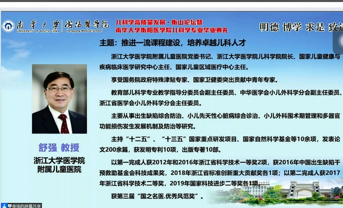 浙江大学医公司附属儿童医公司党委书记舒强教授作《推进一流课程建设,培养卓越儿科人才》讲座,他强调教育改革与创新是新时代医学教育的根本要求,要推进儿科一流课程建设就要培育优秀的儿科人才,推进一流儿科课程建设,做到效果显著。