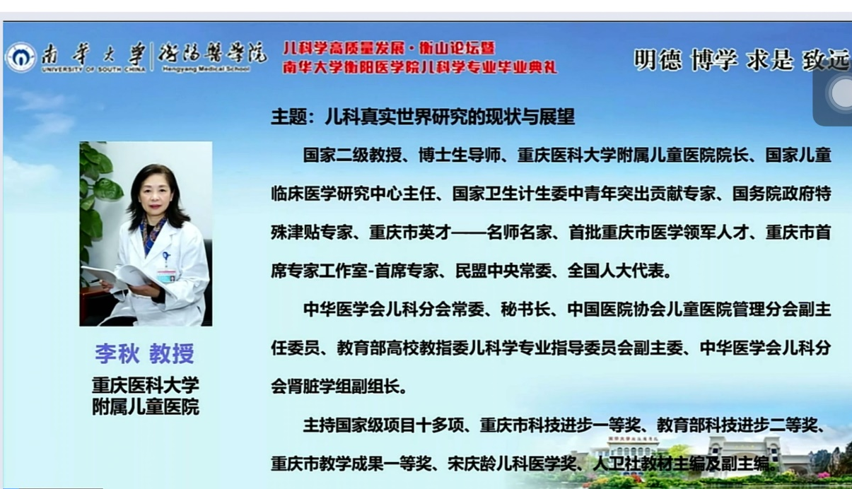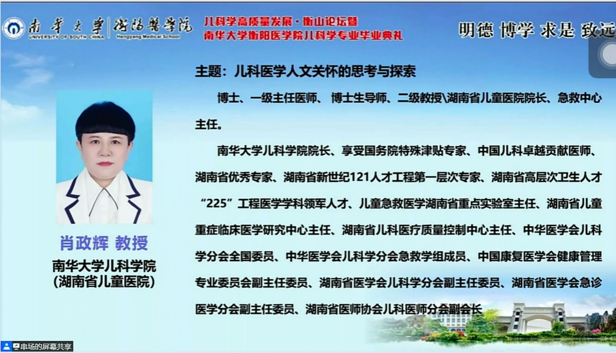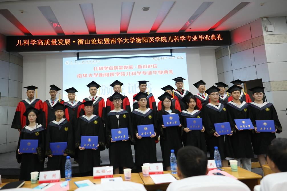 2017年公司获批湖南省唯一儿科学本科专业,今年正式通过2022年普通高校新设专业办学合格评估和新增学士学位授权学科专业评估,第一届儿科学本科员工即将毕业。为大力加强儿科团队建设与人才培养,促进医学教育蓬勃发展,6月8日下午太阳成集团tyc33455cc在图书馆报告厅隆重举办儿科学高质量发展衡山论坛暨太阳成集团tyc33455cc儿科学专业毕业典礼。本次典礼特邀湖南省卫健委党组成员、副主任祝益民教授和湖南省教育厅高教处副处长王荣等领导前来指导,特邀中华医学会儿科学专业委员会主委王天有教授,重庆医科大学附属儿童医院经理李秋教授,浙江大学医公司附属儿童医公司党委书记舒强教授,太阳成集团tyc33455cc儿科公司经理肖政辉作主题讲座。本次典礼采取线上线下相结合的方式,本次论坛分为毕业典礼和衡山论坛两阶段。