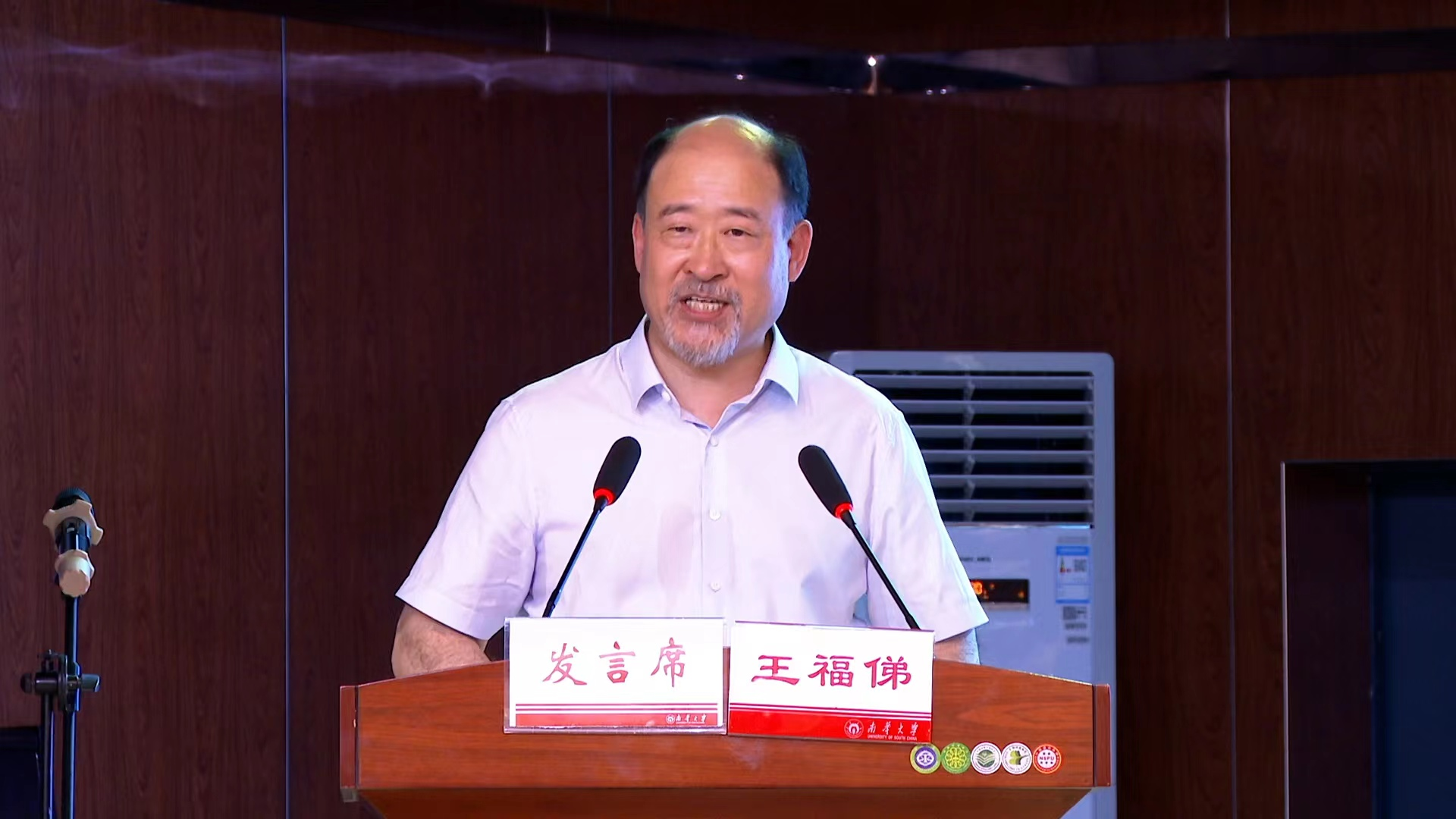 典礼随着国歌的响起正式拉开帷幕。在热烈的掌声中,王福俤致辞。他首先对研究生新生们表示最真诚的欢迎,随后谈及今年以来公司科研工作接连传来喜讯,借此对新生们提出期望——实现科研新突破,实现人生价值。他用青春的奋斗、奋斗的青春、奋斗的时代这三点勉励大家在人生新阶段用奋斗谱写青春的底色,并以优秀员工为例告诫同学们勿虚度年华、荒废光阴,今日做奋发向上之芬芳桃李,明朝做肩负大任之国家栋梁。