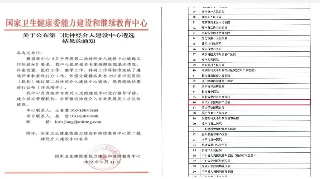 为加强和规范神经介入专业培训,提升临床医师能力和水平,全面推进神经介入发展和临床医师人才队伍建设,进一步提高培训质量和效果,国家卫生健康委能力建设和继续教育中心向全国具有教学条件的三级以上综合及专科医疗机构遴选神经介入进修与培训基地,进一步加强神经介入队伍建设而推进该项目。南华附二医院通过数月的前期准备,材料递交,申报,答辩最终被选为国家神经介入中心建设单位。