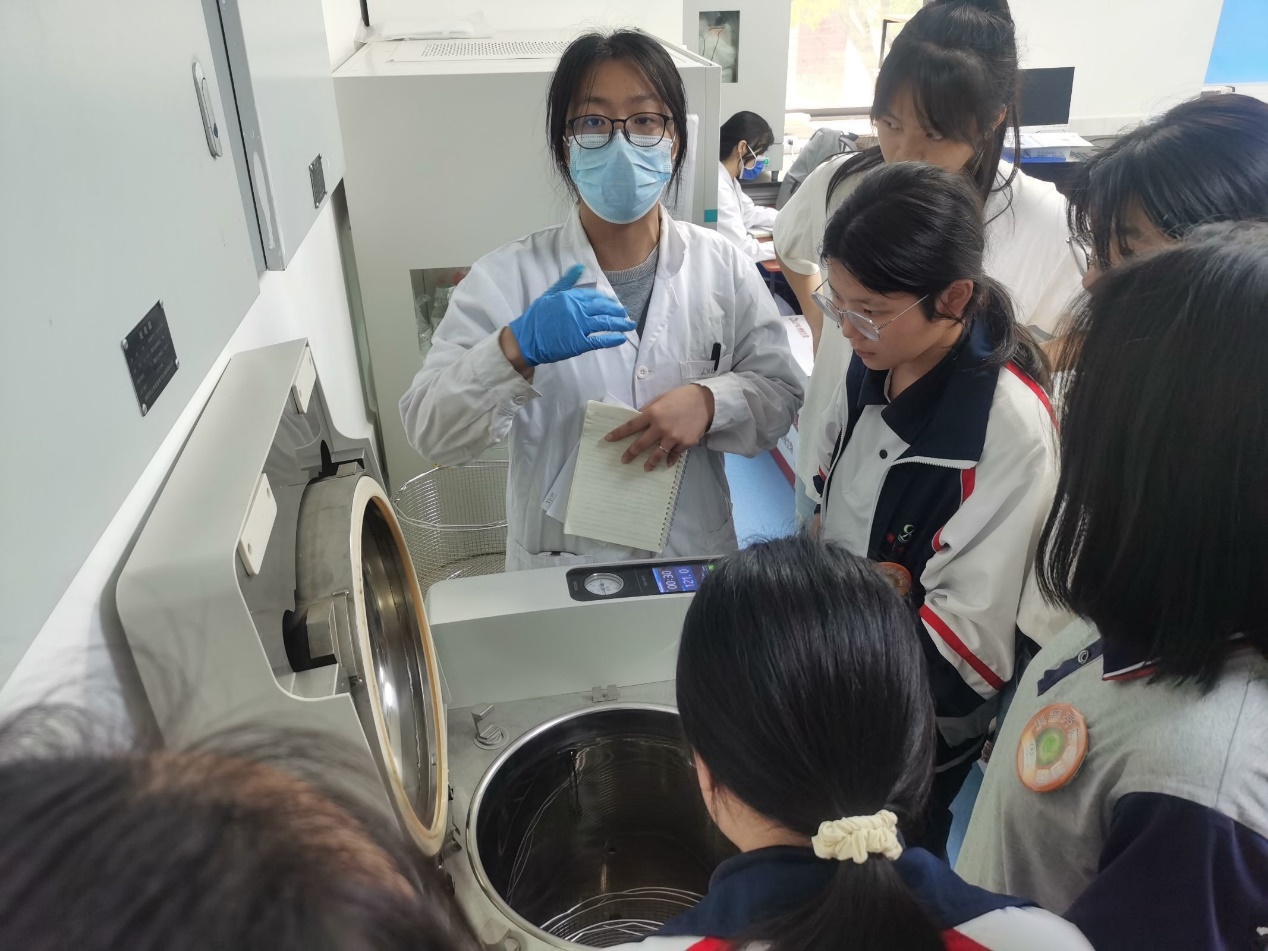 图13硕士生罗旭灵示范使用高压灭菌锅
