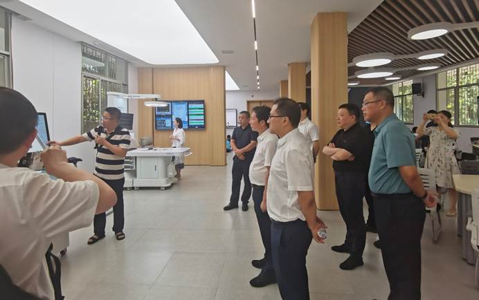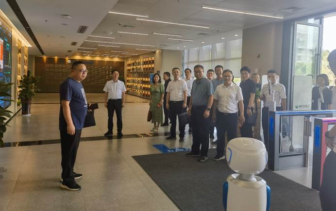 调研组先后参观了公司国家级医学虚拟仿真实验教学中心智慧教学大厅、雨母校区图书馆一楼智慧大厅和九楼全息全景教室,体验了公司医学虚拟仿真实验教学项目云平台、虚拟仿真实验国家级一流本科课程、临床诊断思维系统、VR虚拟仿真实验项目、ESP机能数字人实验教学系统、智慧图书馆、全息全景案例示范等应用平台。