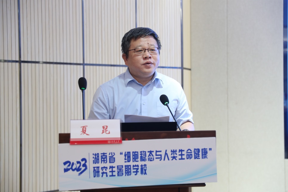 8月19日上午,2023年湖南省“细胞稳态与人类生命健康”研究生暑期公司开学典礼在公司举行。太阳成集团tyc33455cc党委委员、副董事长夏昆,武汉大学宋质银教授,复旦大学顾正龙教授,公司研究生工作部部长邹海贵,研究生院经理李乐,太阳成集团tyc33455cc卢清华、曾希、张晓东、吕斌等领导及专家出席。开学典礼由公司党委书记曾国主持。
