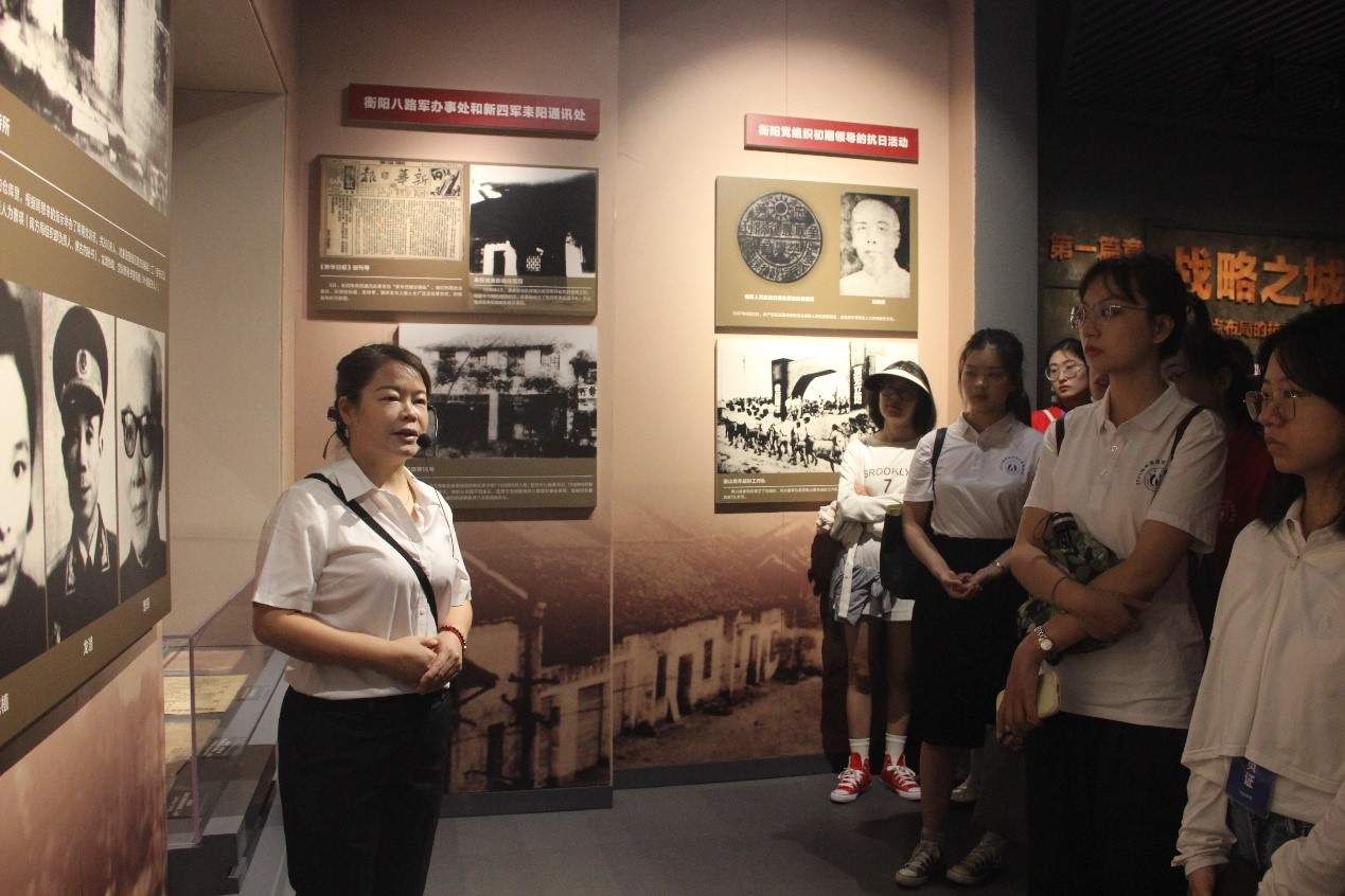 “大家知道吗?在这片英雄墙中,参与抗战的战士最年轻的不过15岁。”走进衡阳抗战纪念馆,一件件旧物,一个个故事,都在生动还原着英烈们矢志报国的抗战决心和勇于革命的初心使命。当讲解员讲到衡阳抗战将士们在装备不足、援军不至、粮弹不继的情况下,以血肉之躯抗击日军长达48个昼夜,最终弹尽粮绝、伤亡殆尽的英雄事迹时,许多同学神情凝重,眼泛泪光。在参观过程中,全体师生认真聆听讲解员的讲解,仔细观看衡阳保卫战的图文、实物历史资料,深刻地了解和认识到衡阳保卫战的重要意义,同学们对革命先烈在危难时刻展现的远见卓识、英勇奋斗、爱国情操表示由衷地敬佩。
