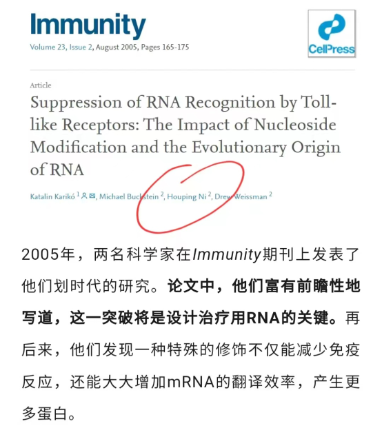 我于1998年进入宾夕法尼亚大学(University of Pennsylvania)医公司,加入Dr. Weissman (魏斯曼博士)团队至今,并有幸与Dr. Kariko(考里卡博士)并肩工作。我一直在从事有关mRNA用于治疗传染病的研究。mRNA 是一种不稳定的物质,非常容易降解,并且会引起内源性炎性反应。我们在2005年发表的论文中报道了一个特殊修饰的mRNA,其不仅能减少免疫反应,还能大大增加mRNA的翻译效率,产生更多的蛋白。我们思考如何把mRNA用于人体内,去防治传染病。mRNA疫苗对于保护人类健康的意义不仅在于征服新冠,还为征服其它重大疾病的研究打开了一扇门。