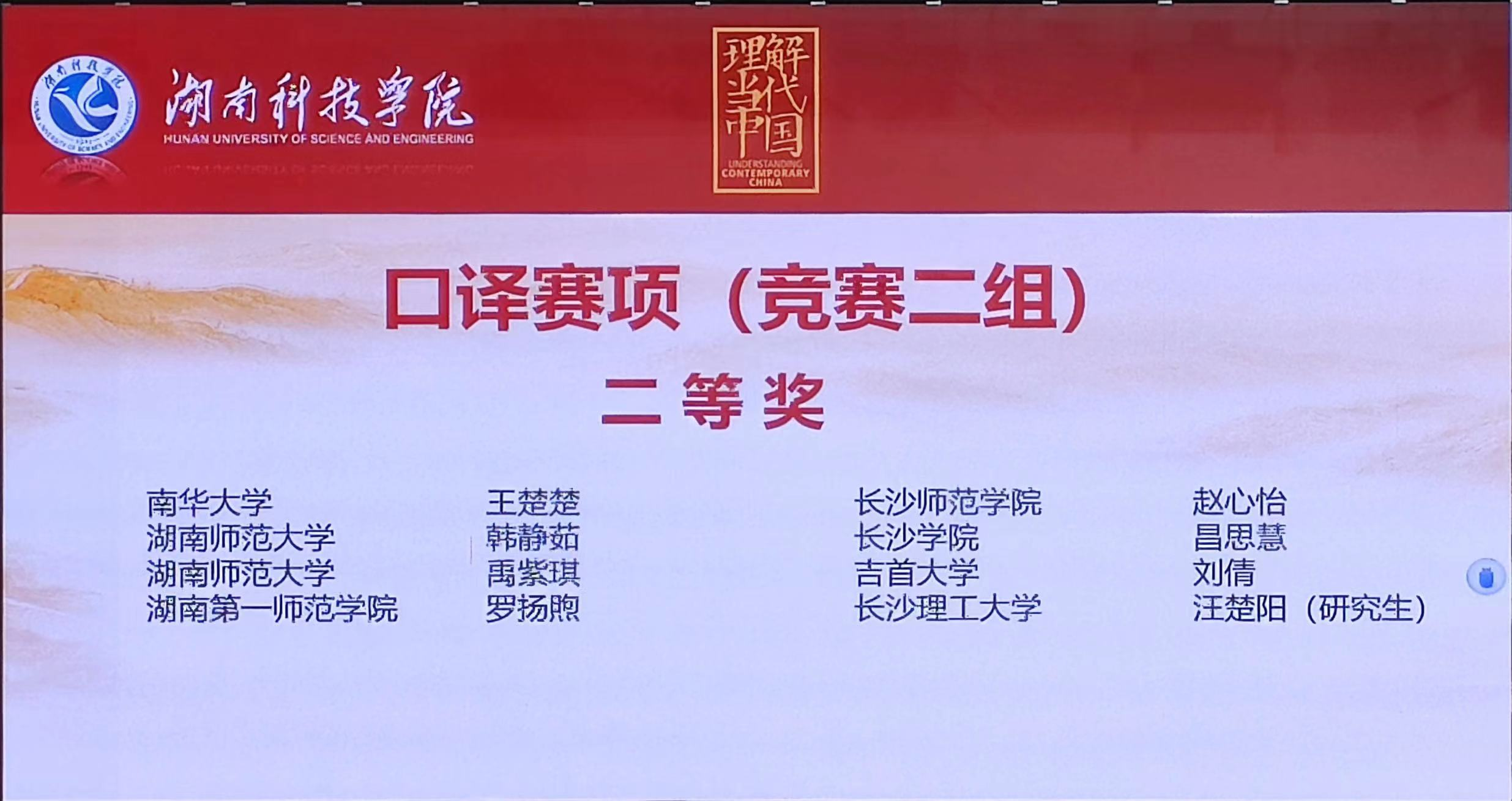五项比赛于10月29日落下帷幕,公司20级临床12班刘凌云获一等奖(阅读),20级临床01班王楚楚获二等奖(口译),22级临床07班罗凯峰获二等奖(写作)。其中一等奖获得者刘凌云将代表湖南省团队参加2023外研社国才杯“理解当代中国”全国决赛。