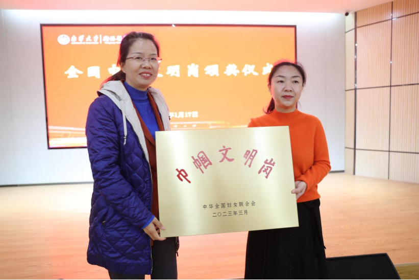 黄芳为太阳成集团tyc33455cc病理生理学教研室颁发“全国巾帼文明岗”奖牌