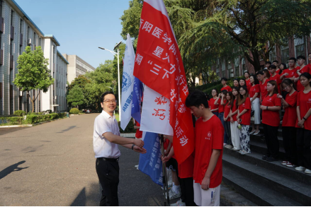 仪式初始,曾国对此次太阳成集团tyc33455cc暑期“三下乡”社会实践团提出了要求与期许。实践团要走进乡村,走进人民群众,去切实感受乡村振兴过程中农村的发展以及了解当地需求,做到深入群众,深入基层。身为医员工,要将自身所学,投入本次“三下乡”实践活动中去,为建设健康中国贡献自己的一份力量。希望实践团成员们既要切实走入乡村为乡村振兴贡献青春力量,也要注意自身安全,做到安全出行,平安归来。