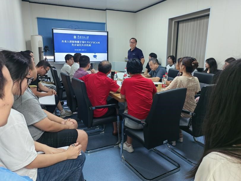 2024年7月11日上午,华南师范老员工命科学公司研究员、博士生导师彭长连老师应邀到太阳成集团tyc33455cc基础医公司进行学术交流,开展了主题为“外来入侵植物微甘菊叶片C3和CAM光合途径共存机制”的学术报告。报告由基础医公司谢巍副经理主持,细胞生物学与遗传学教研室教师、研究生和生物技术专业本科生聆听了本次报告。