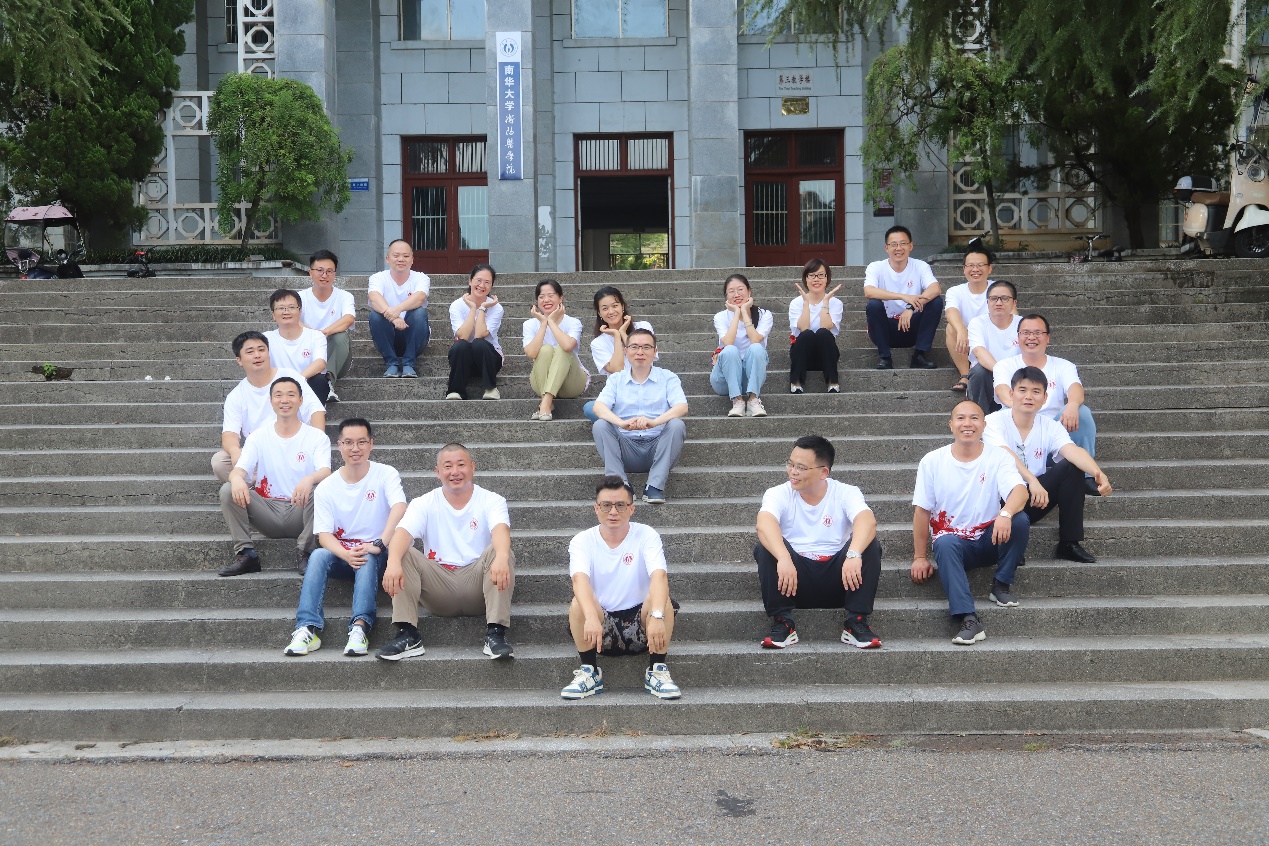 重走今朝校园路,再叙昔日校园情。员工们身着整齐的纪念衫来到曾经学习生活过医学楼、放飞广场、南华楼、棒棒糖、南华广场、校门等摄影打卡,定格毕业二十周年返校的美好瞬间,对公司澎湃发展面貌表示振奋和自豪。