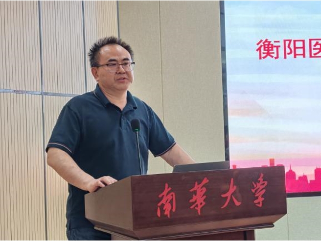 分享会伊始,基础医公司副经理谢巍介绍与会领导和讲者;随后公司党委书记曾国讲话,医员工应当深刻把握“创新思维”与“实践能力”的双重内涵,将创新能力培养内化为终身发展的核心素养,鼓励衡医学子在双创赛道上展现衡医风采。