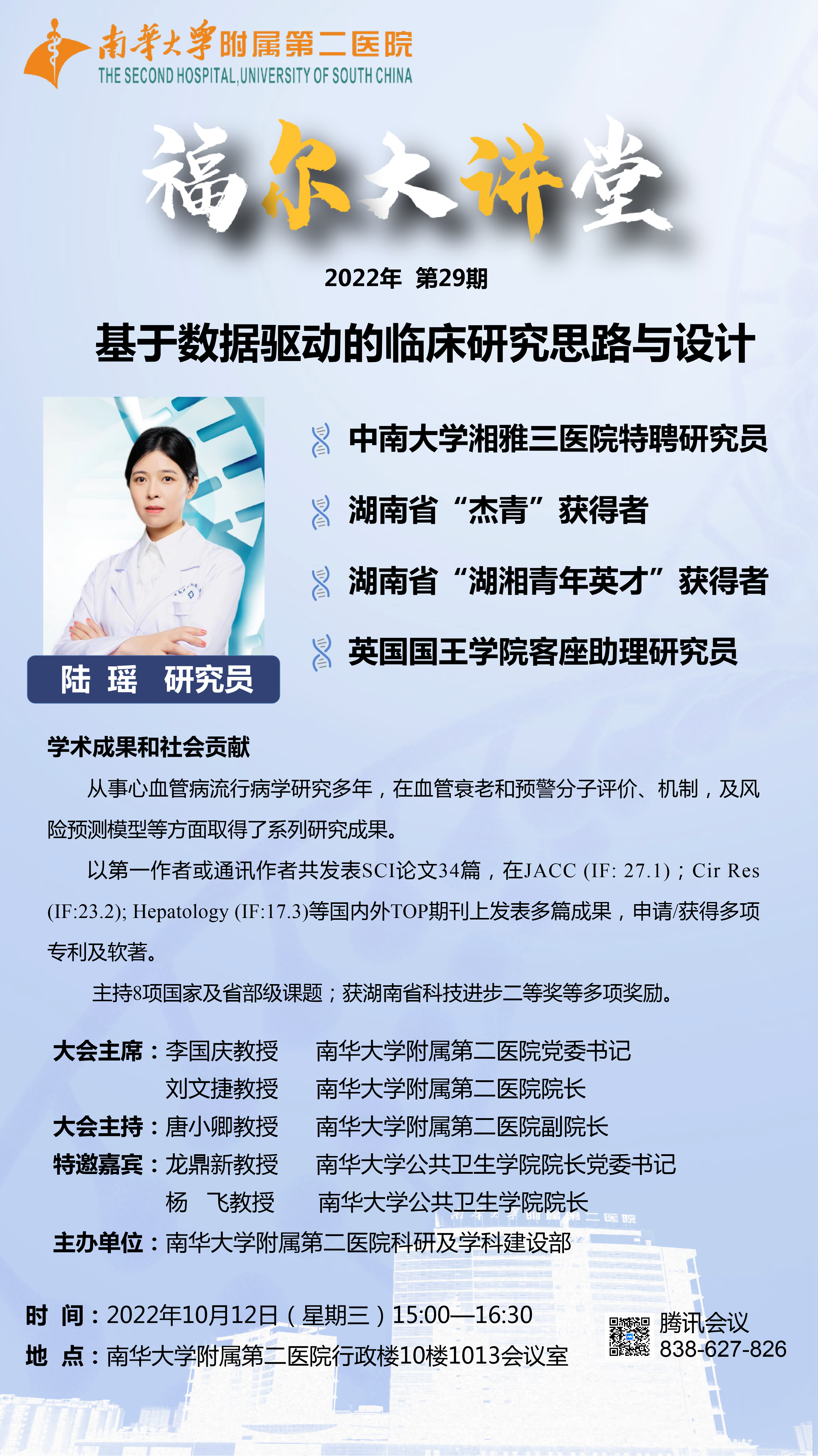 科研讲座 | 附属第二医院福尔大讲堂:基于数据驱动的临床研究思路与设计