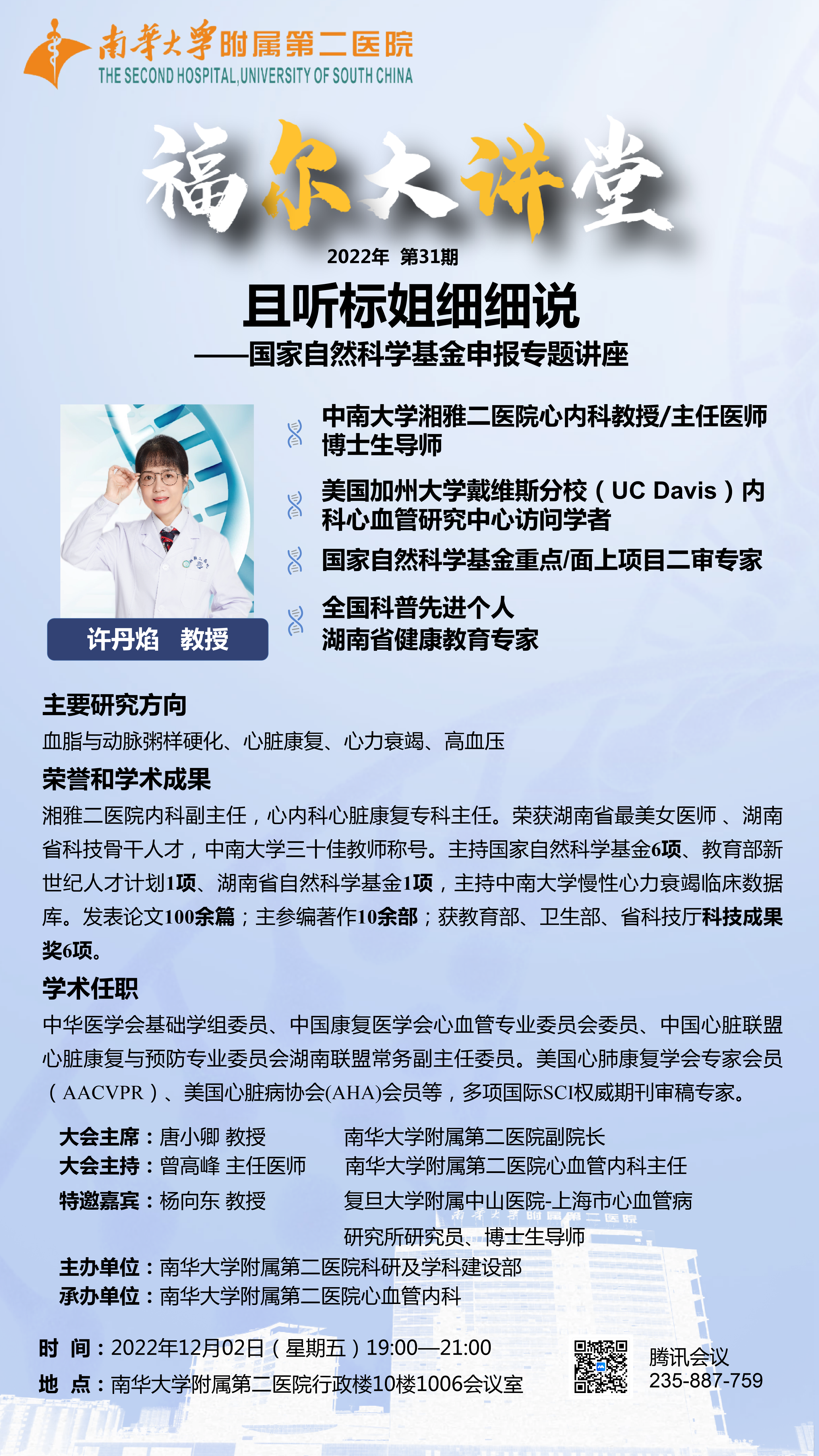 科研讲座 | 附属第二医院福尔大讲堂:且听标姐细细说--国家自然科学基金申报专题讲座
