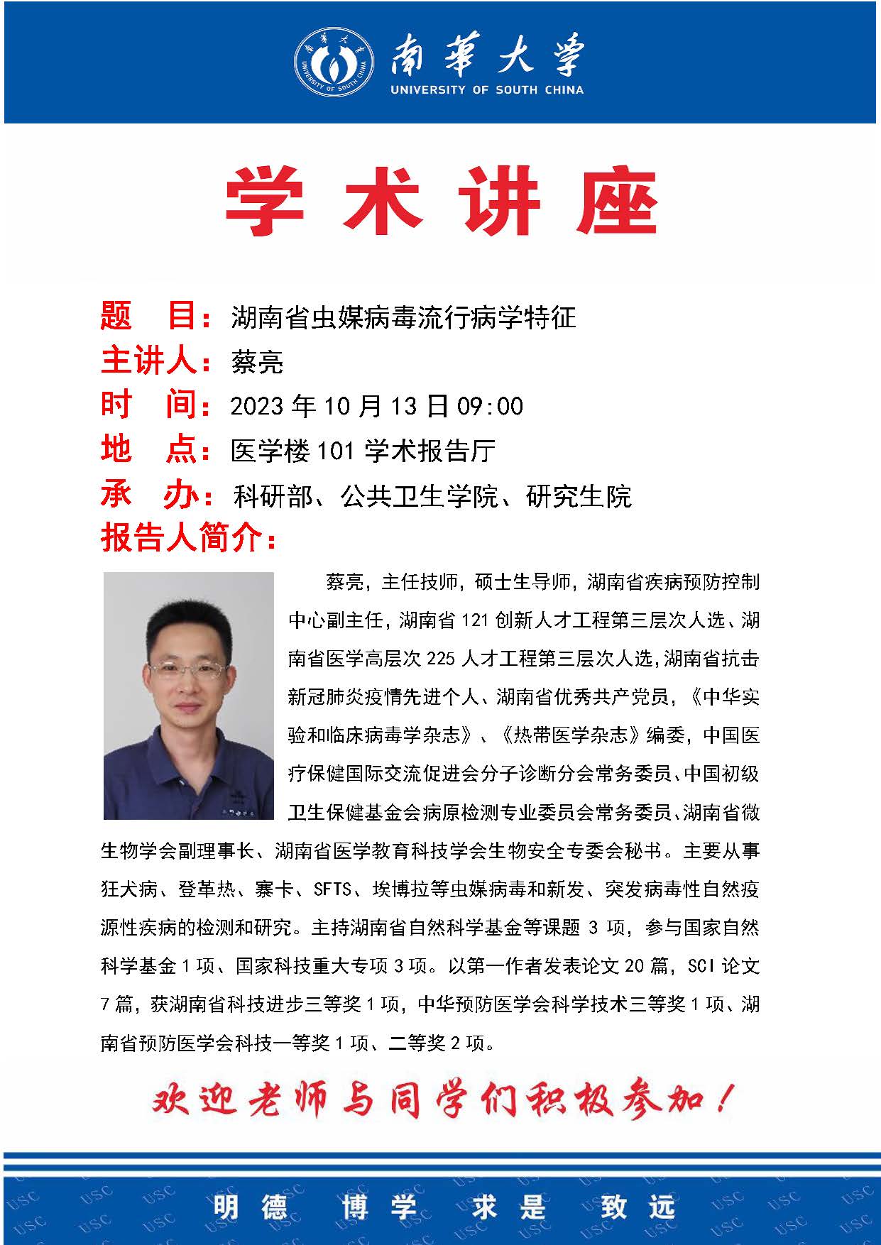 学术讲座 | 蔡亮主任:湖南省虫媒病毒流行病学特征