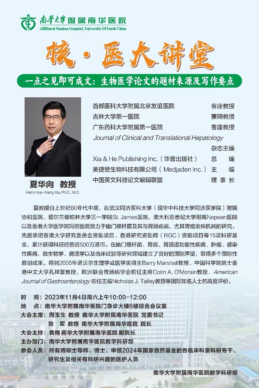 学术讲座 | 夏华向教授:生物医学论文的题材来源及写作要点