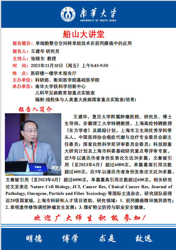 船山大讲堂 | 王建华研究员:单细胞整合空间转录组技术在前列腺癌中的应用