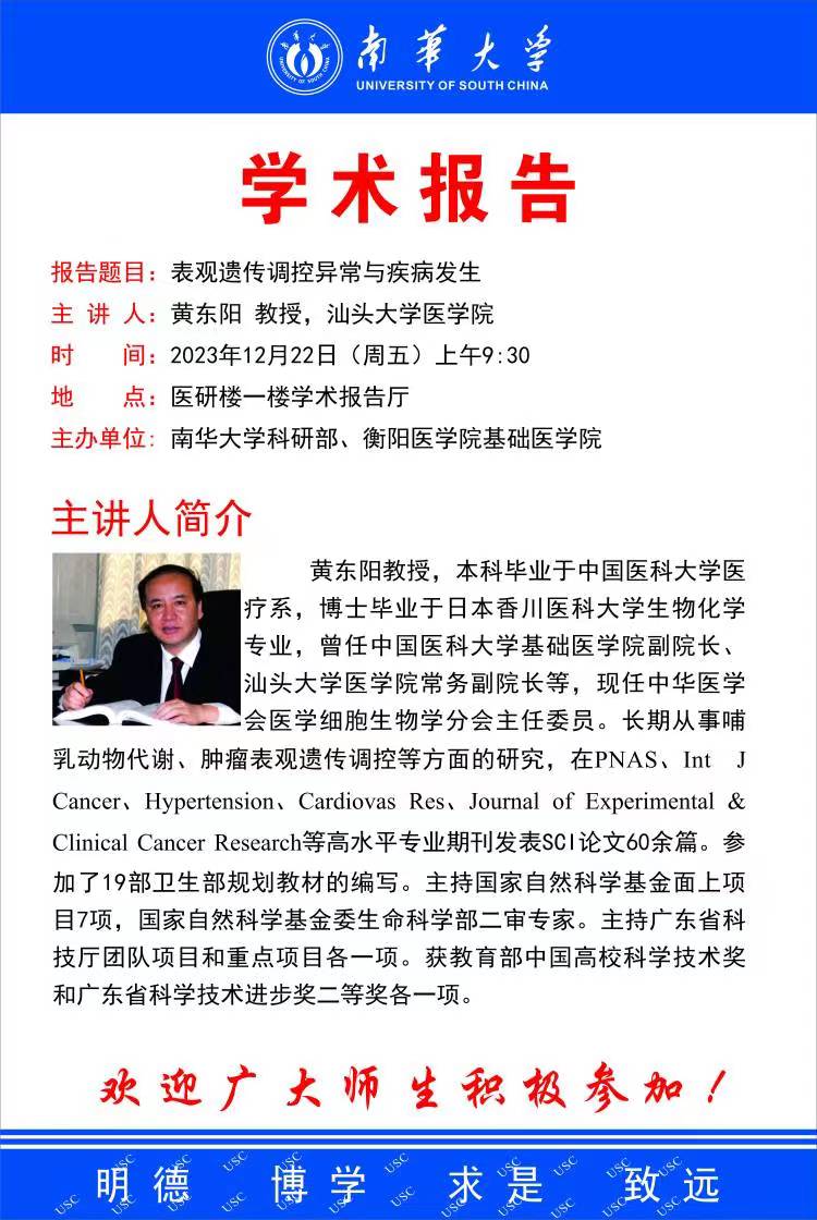 学术讲座 | 黄东阳教授:表观遗传调控异常与疾病发生