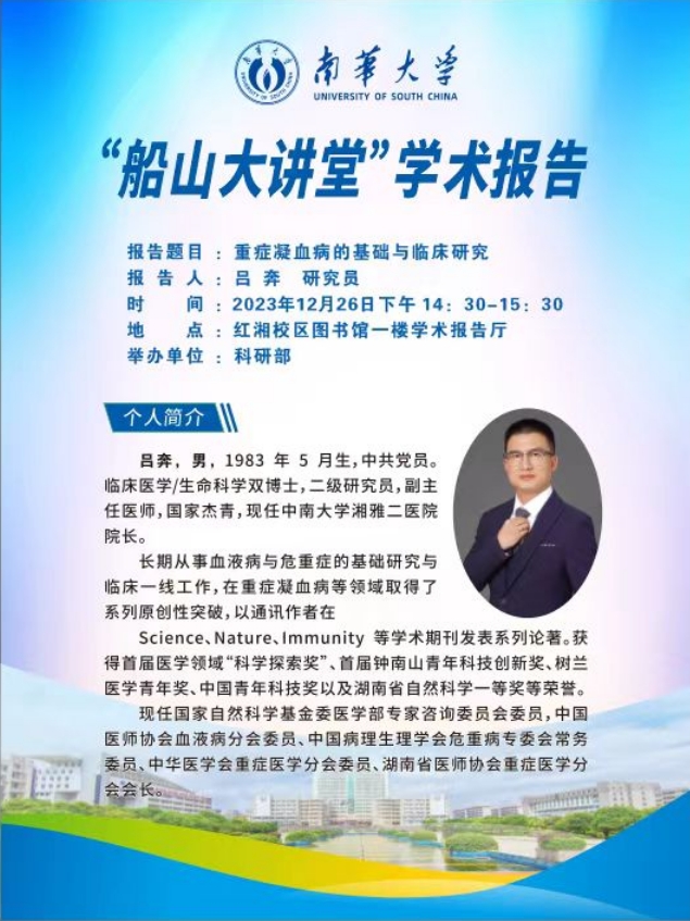 上一条:“船山大讲堂”学术报告 | 殷雷教授:抗原识别和生物医药挖掘 下一条:“船山大讲堂”学术报告 | 陈学峰教授:Dissecting the roles of the RNF20/RNF40 ubiquitin ligase in preserving genome stability