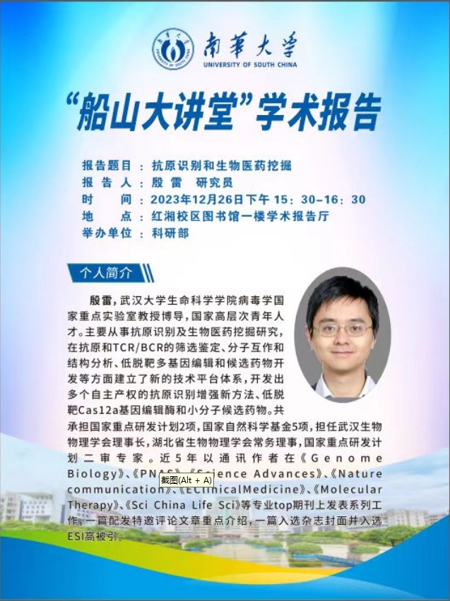 “船山大讲堂”学术报告 | 殷雷教授:抗原识别和生物医药挖掘