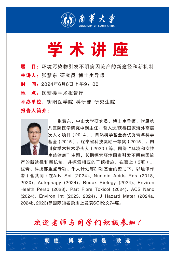 学术讲座 | 张慧东研究员:环境污染物引发不明病因流产的新途径和新机制