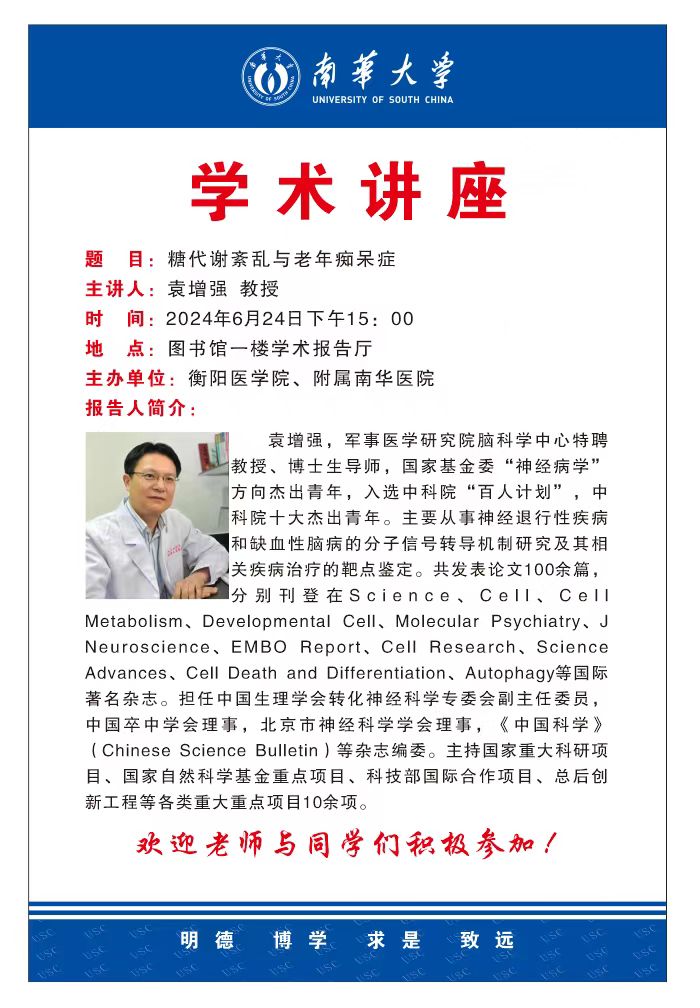 学术讲座 | 袁增强教授:糖代谢紊乱与老年痴呆症