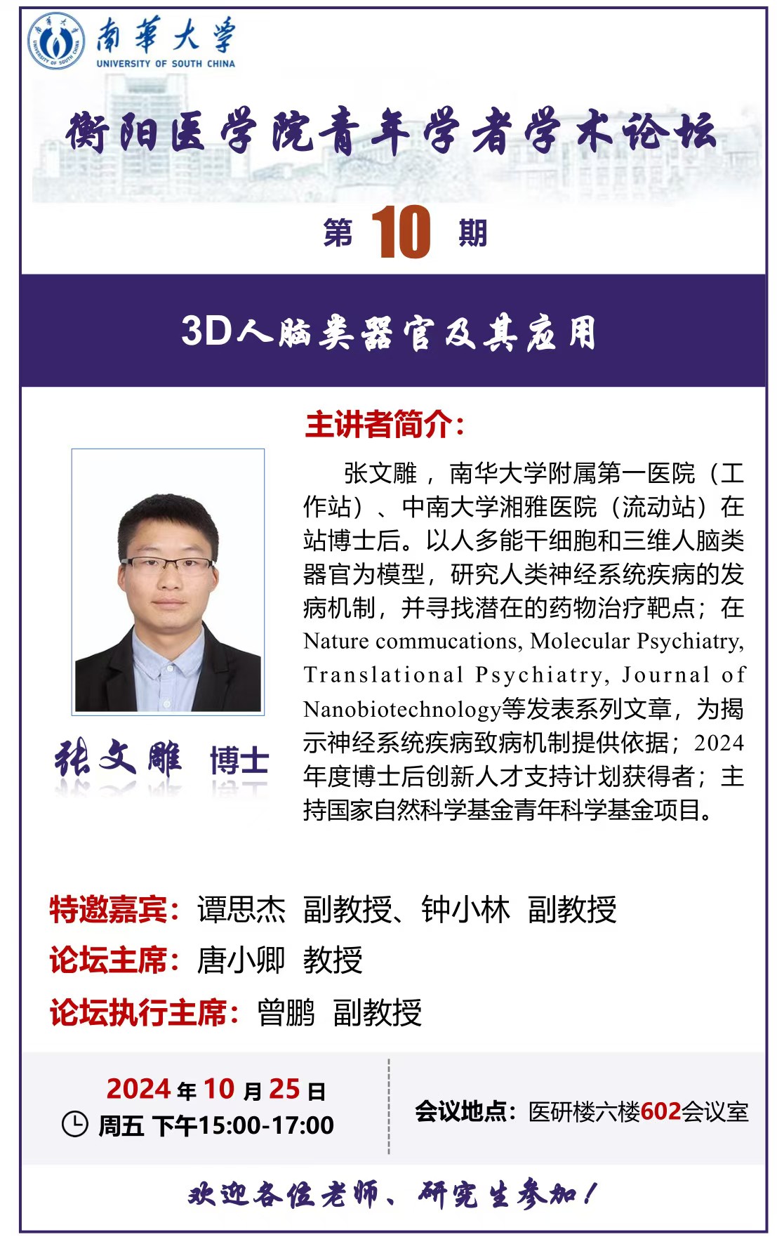 太阳成集团tyc33455cc青年学者学术论坛 | 张文雕博士:3D人脑类器官及其应用