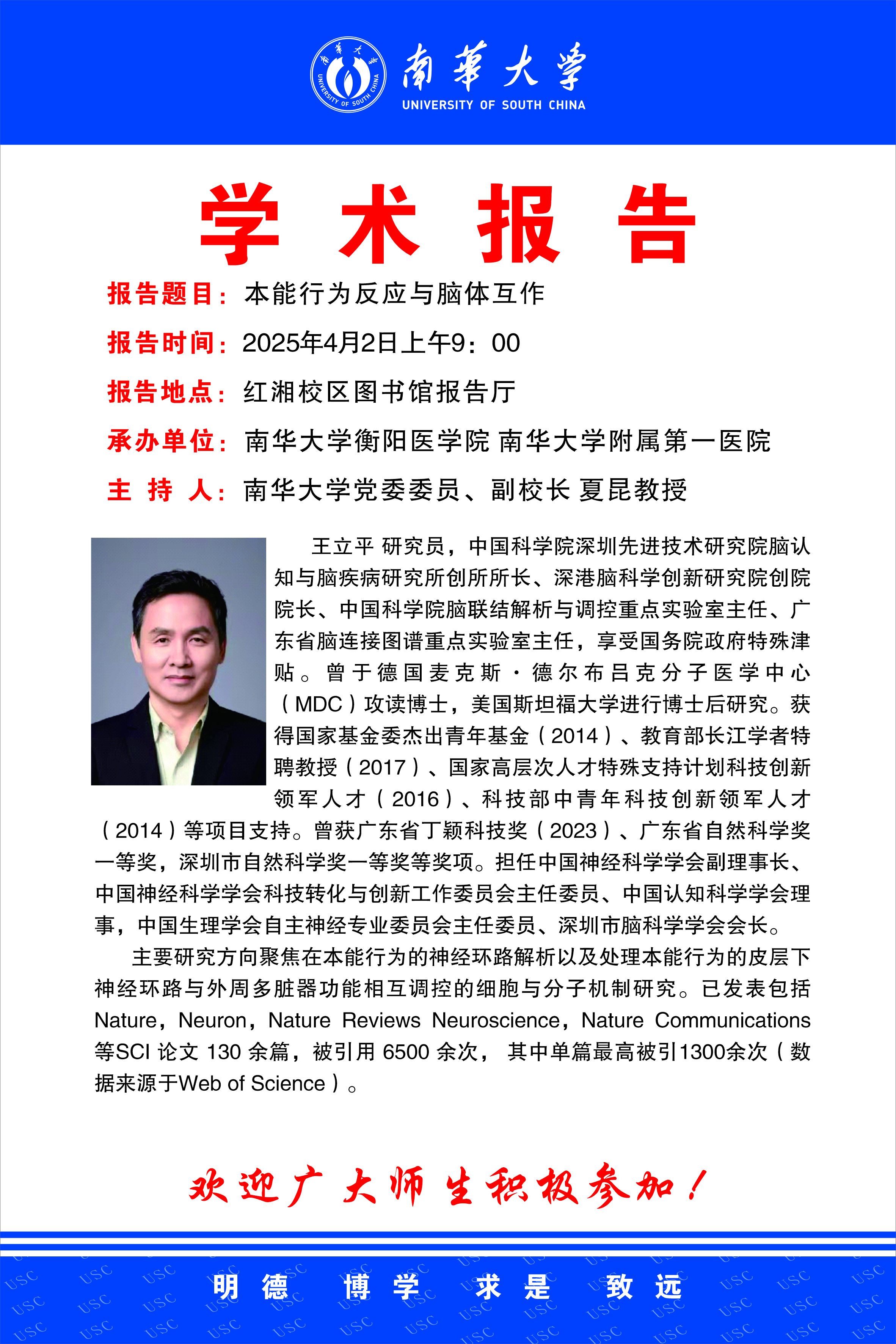 学术报告 | 王立平研究员:本能行为反应与脑体互作