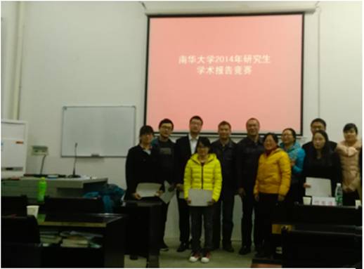 主持人黄艳琴首先介绍了此次竞赛的参赛人员,接着宣读选手竞赛顺序和相关评分规则。紧接着由各位选手进行学术报告。整个竞赛过程十分激烈,报告的内容形式多样,涉及到医学、核资、环境安全、中西方文化等各个层面,但均来源于参赛者已发表的研究性论文;PPT图案更是精美绝伦,10位参赛选手有6位是以全英文的报告形式向大家介绍,真是让我们享受了一场丰盛的学术大餐。整个竞赛进行约3个小时,主持人黄艳琴总结此次竞赛过程并宣布获奖选手名单,奖项分为优秀奖、三等奖、二等奖和一等奖。医公司张敏博士以“AIBP blocked the formation of foam cells by preventing macrophages ABCA1 degradation”为题的报告荣获一等奖;外国语公司伍媚春、核工程公司徐守龙博士获得二等奖;李小龙,雷明获三等奖;刘秀、刘晓旺获优秀奖。